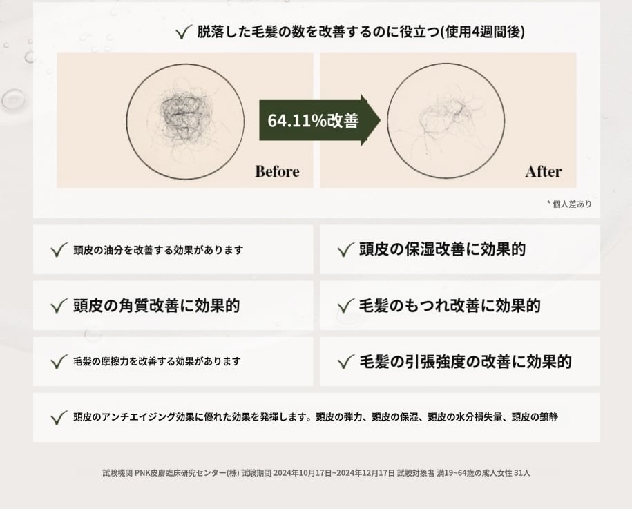 頭皮の老廃物をすっきりと洗浄し、パサついてコシのない髪に栄養を与えて、健やかに整えるシャンプーです。